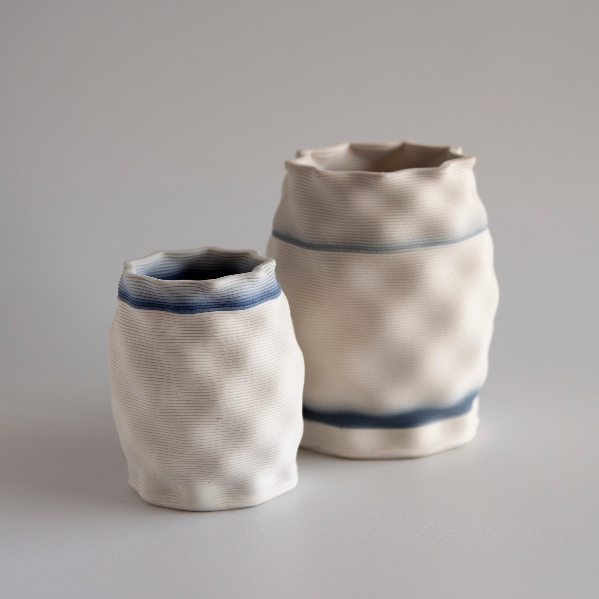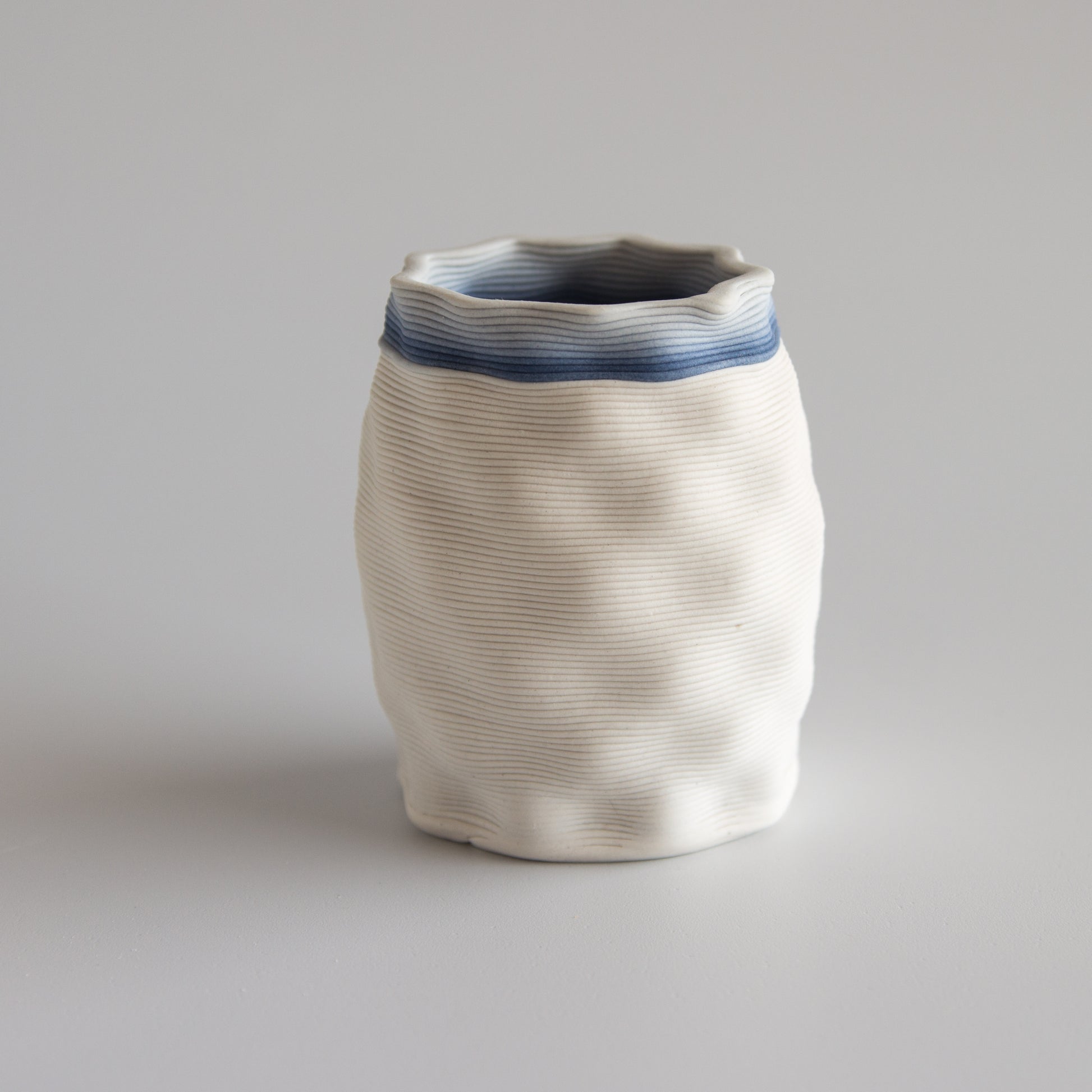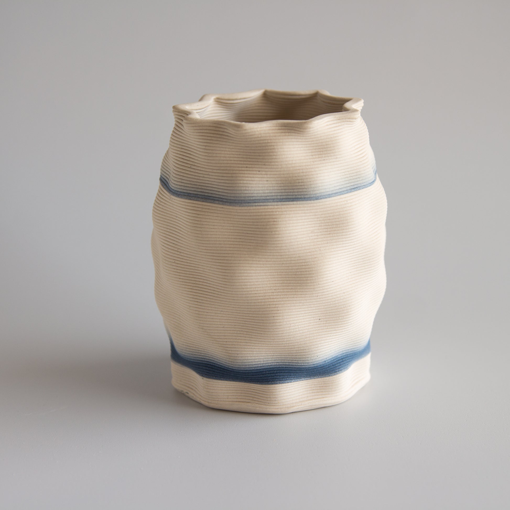 A small ceramic-made vase, with a contemporary design, manufactured using a combination of 3d printing with handmade ceramics.
